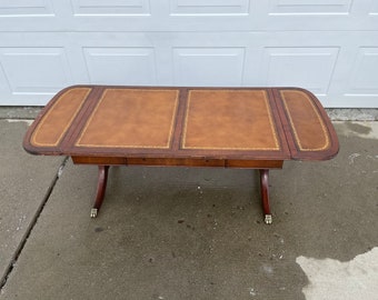 This is not a generic piece of furniture. Hoop cantilevered low cocktail table by j. Cubist wood floating base and frame create a sculptural and airy piece. Robert merceris, art deco marble & wrought iron coffee table, france, circa 1940. American regency style mahogany leather top coffee table, circa 1940 ' s 7 photo.